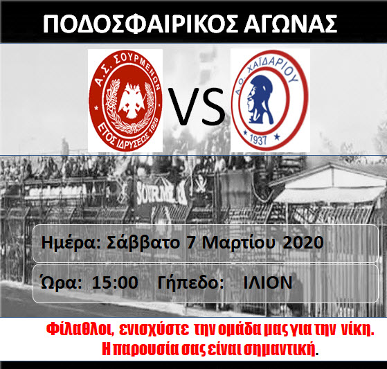 ΕΝΙΣΧΥΣΤΕ ΤΗΝ ΟΜΑΔΑ ΜΕ ΤΗΝ ΠΑΡΟΥΣΙΑ ΣΑΣ. ΤΟ ΣΑΒΒΑΤΟ 07 ΜΑΡΤΙΟΥ ΣΤΙΣ 15:00 ΣΤΟ ΓΗΜΕΔΟ ΤΟΥ ΙΛΙΟΥ.